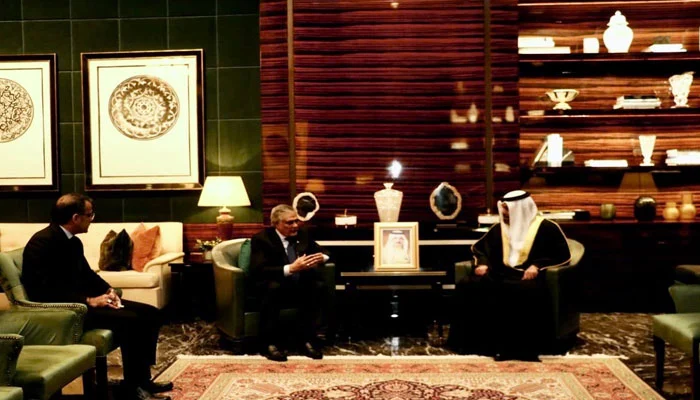 نائب وزیراعظم اسحاق ڈار نے بحرین کے وزیر خزانہ شیخ سلمان بن خلیفہ سے ملاقات کی ہے۔