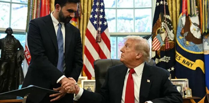 روئٹرز کے مطابق مہینوں تک ایک دوسرے سے متعلق توہین آمیز بیانات کے بعد آخرکار جمعہ کو ظہران ممدانی اور ڈونلڈ ٹرمپ نے وائٹ ہاؤس میں ایک دوسرے کا آمنا سامنا کیا اور غیر متوقع طور پر ایک دوستانہ ملاقات کی، ایک دوسرے کی تعریف کی گئی اور نیویارک میں جرائم اور مہنگائی کے کنٹرول کے لیے تعاون کا عہد کیا گیا۔