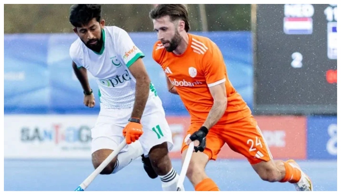 پاکستان ہاکی ٹیم کو نیدر لینڈز کے خلاف 5-2 سے شکست اٹھانی پڑی، پاکستان کی جانب سے پہلا گول حنان شاہد نے کیا اور پھر اگلا گول صفیان خان کی جانب سے کیا گیا۔