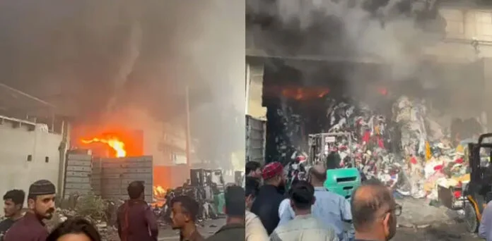 کراچی لانڈھی ایکسپورٹ پروسیسنگ زون میں گارمنٹس فیکٹری میں لگنے والی آگ پر 19 گھنٹے بعد بھی قابو نہیں پایا جاسکا۔