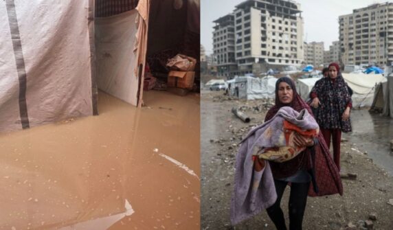 غزہ میں بارش، پناہ گزینوں کے خیمے ڈوب گئے، بچا کھچا سامان بھی پانی کی نذر