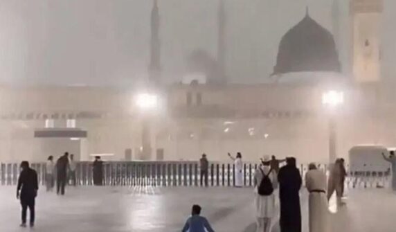 مدینہ منورہ میں گرج چمک کیساتھ بارش، گنبدِ خضریٰ پر روح پرور مناظر